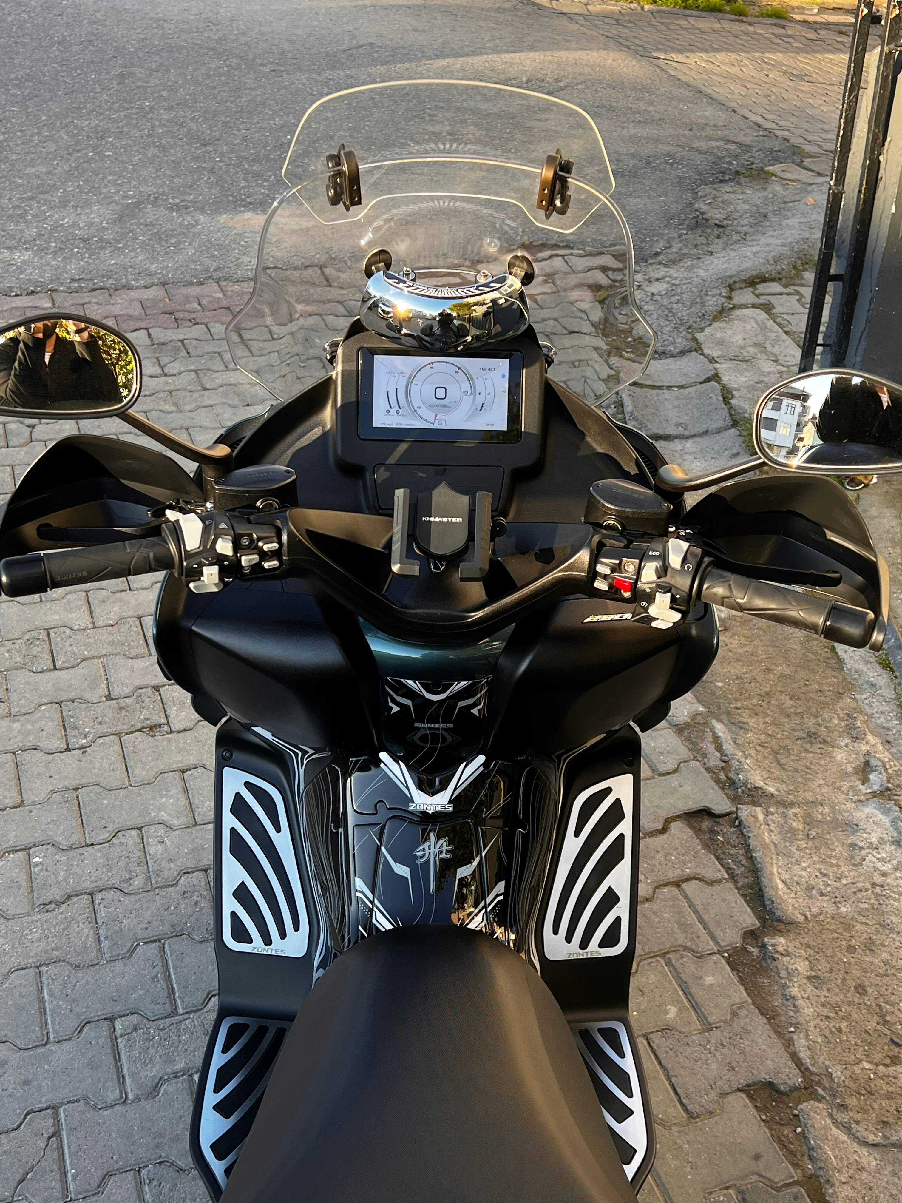 Zontes ZT250T‑E Nightline Series Tank Pad Set (2024‑2025) motosikletinizin 2024‑2025 model yılı için özel olarak tasarlanmış şık bir aksesuarıdır. Nightline Series temasının karanlık ve sofistike havası, siyah zemin üzerindeki ince çizgi ve gölge oyunlarıyla birleşerek ZT250T‑E’nin agresif karakterini zarif bir şekilde tamamlar. Model‑uyumlu kesimi sayesinde depo yüzeyine tam oturur; yüksek kaliteli yapışkanı ile kolay uygulanır ve uzun süreli kullanımda kabarma ya da deformasyon göstermez. Bu set yalnızca koruyucu bir unsur değil, aynı zamanda motosikletinize kişisel bir stil kazandıran estetik bir tercih olarak öne çıkar.